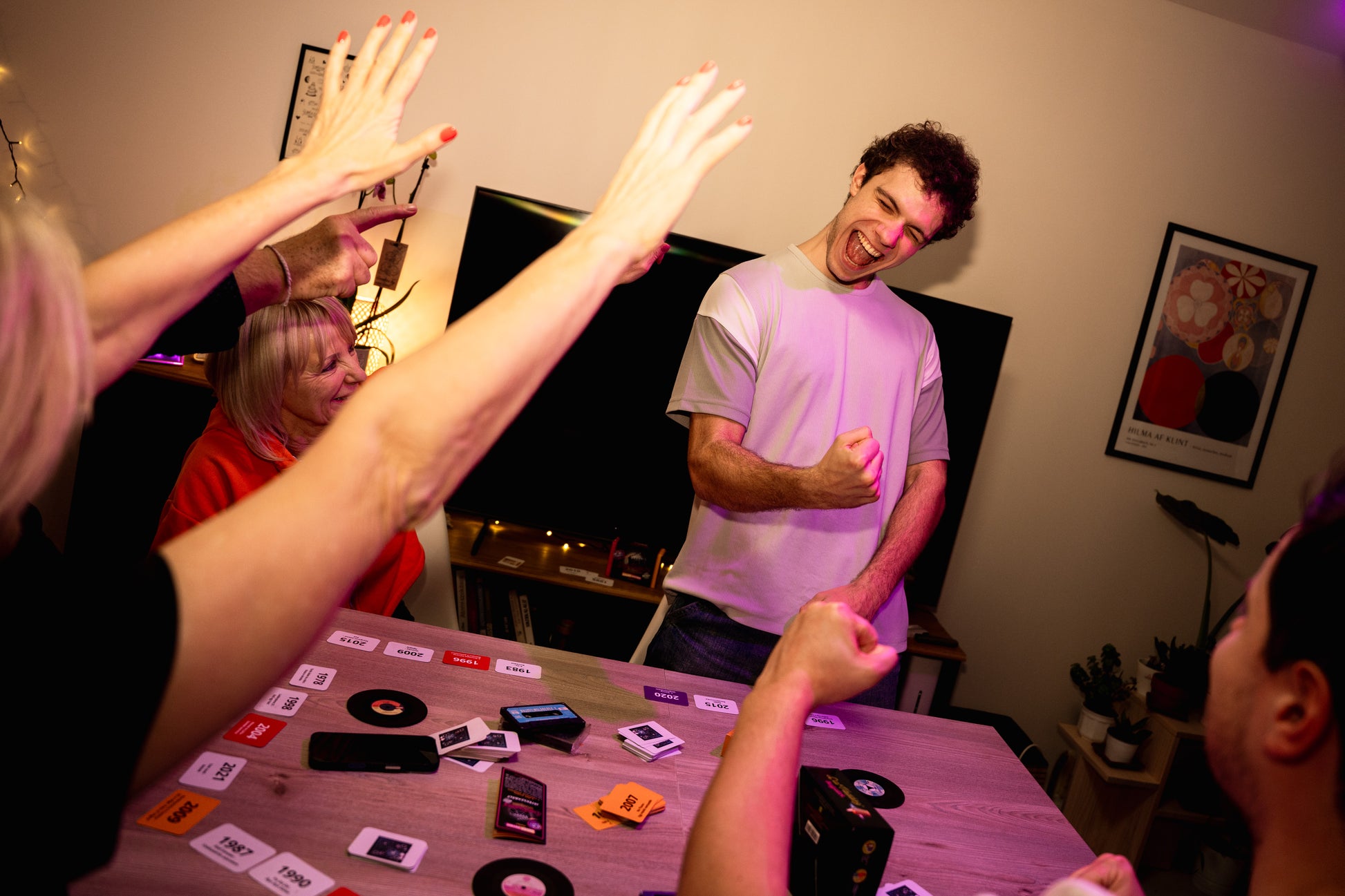 Amint valamelyik játékos/csapat helyes sorba rendez 9 db, az idővonalán jól elhelyezett kártyát, megnyeri a játékot 👑