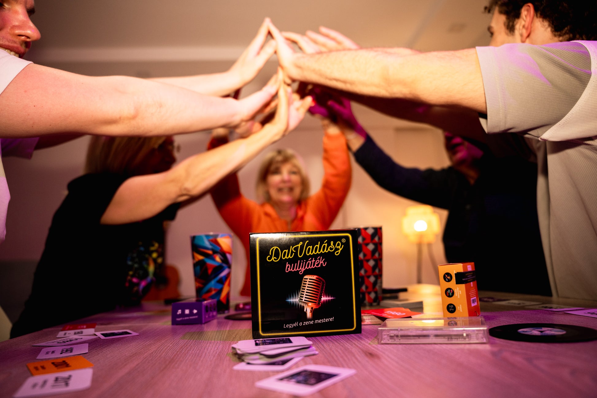 Dalvadász bulijáték magyar zenékkel - VIP év eleji Csomag (Alap csomag 144 kártya + 108 piros kiegészítő kártya, bluetooth hangszóró)